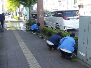 今回は苗をたくさん用意し ”きゃんばす子安台保育園” の園児たちと一緒に花植えも
